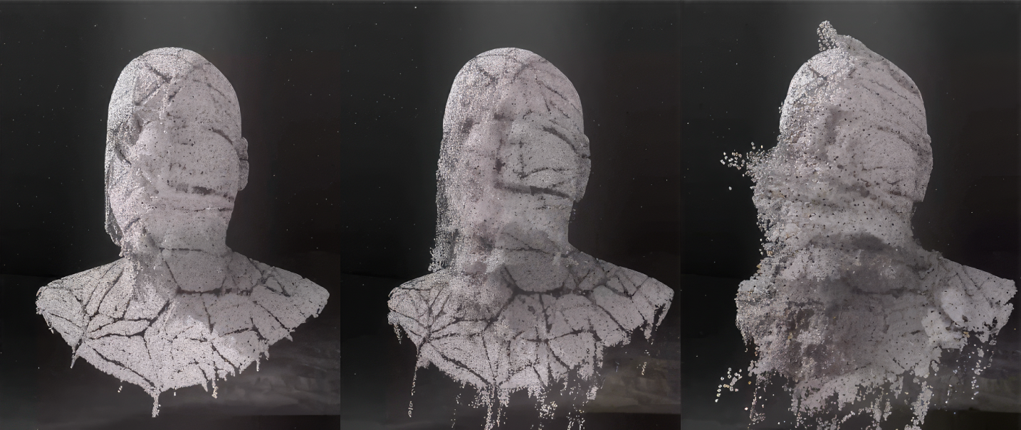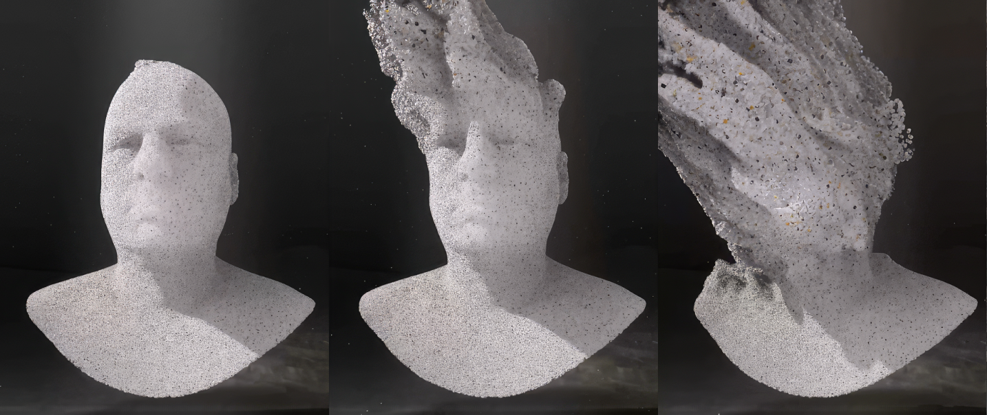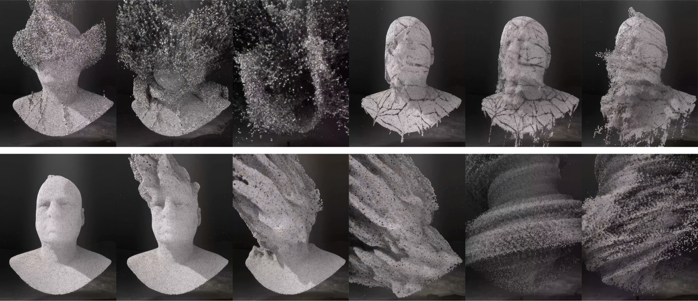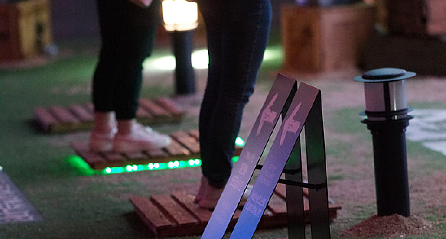 참여자가 발판에 서면 캐릭터 얼굴의 파티클이 부서지고 흩어지는 연출로, 유동 인구의 시선을 사로잡았습니다.