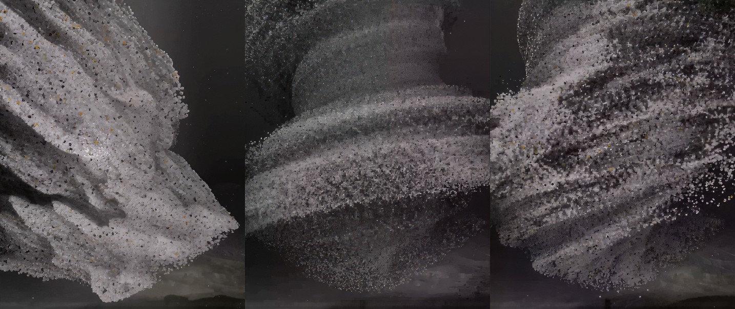 흰 가루의 텍스쳐를 이용하여 마약이라는 소재를 은유적으로 표현했습니다.