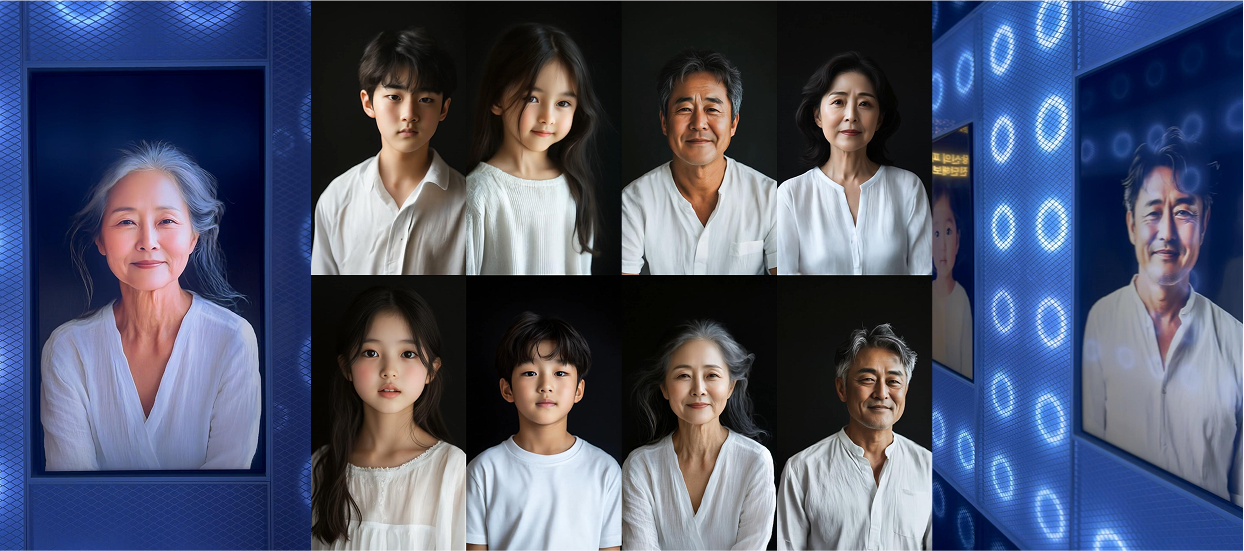 ComfyUI를 이용하여 실시간으로 얼굴을 합성하며, 현재 모습과 30년 후의 모습을 gif 로 보여주는 방식입니다.