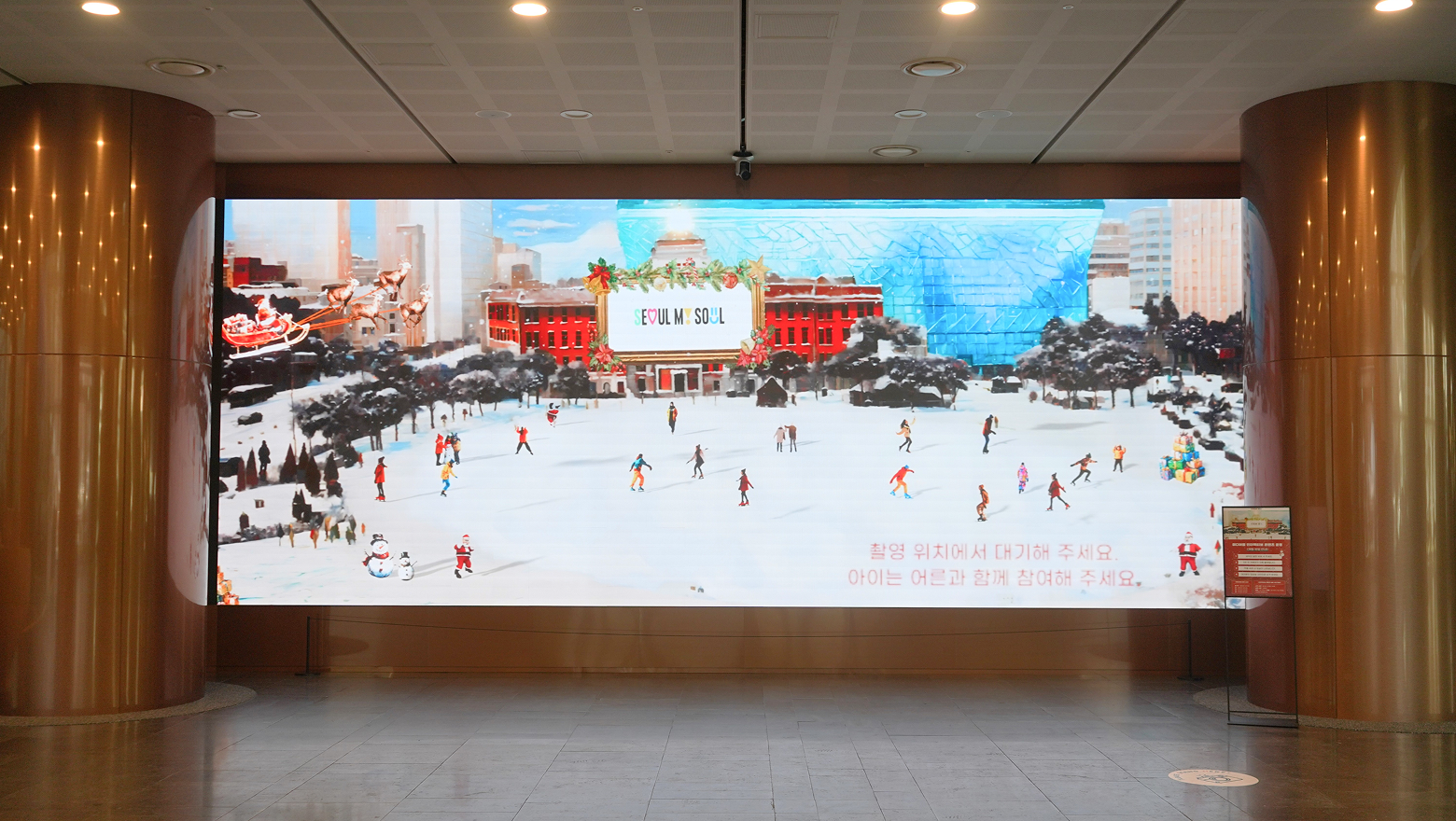 서울시청 로비를 찾는 가족 단위 방문객을 위한 체험형 콘텐츠를 연출 및 제작했으며, 참여자 수 카운팅 기능을 통해 콘텐츠의 실제 활용 현황을 파악할 수 있게 했습니다.