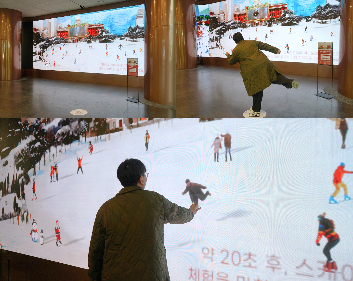 AI 배경 제거 기술로 크로마키 없이도 광장을 채우는 사람들의 모습을 선명하게 표현했으며, 체험 요소별 맞춤형 사운드 디자인으로 몰입도를 높였습니다.