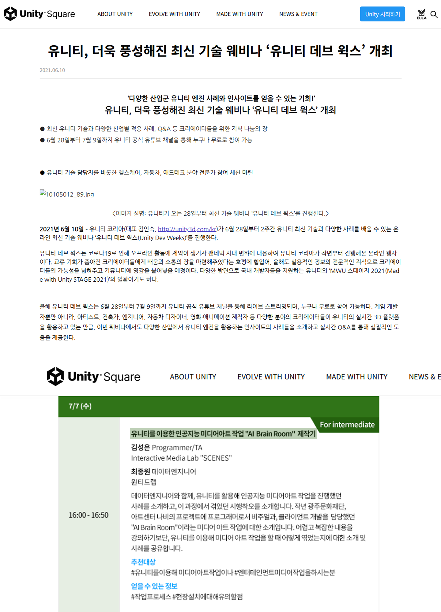 날짜 2021.06.28 - 07.09장소 유니티 코리아 유튜브