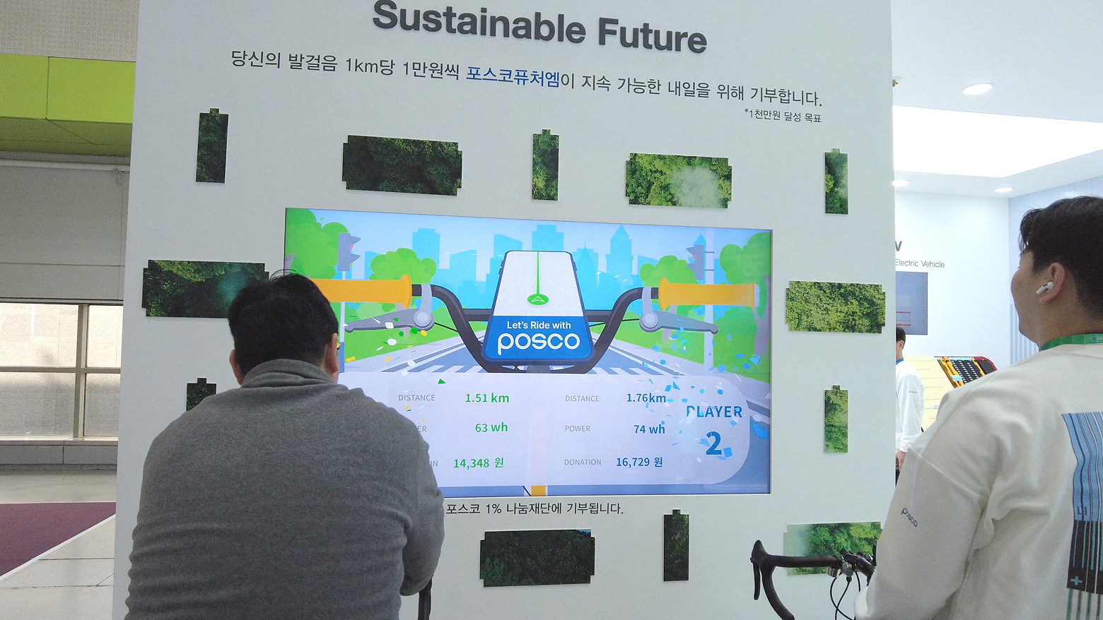 관람객이 페달을 밟을 때마다 전기가 생산되고 기부금이 적립되는 체험으로, 3일간 1,000명 이상이 참여해 에너지와 나눔의 가치를 함께했습니다.