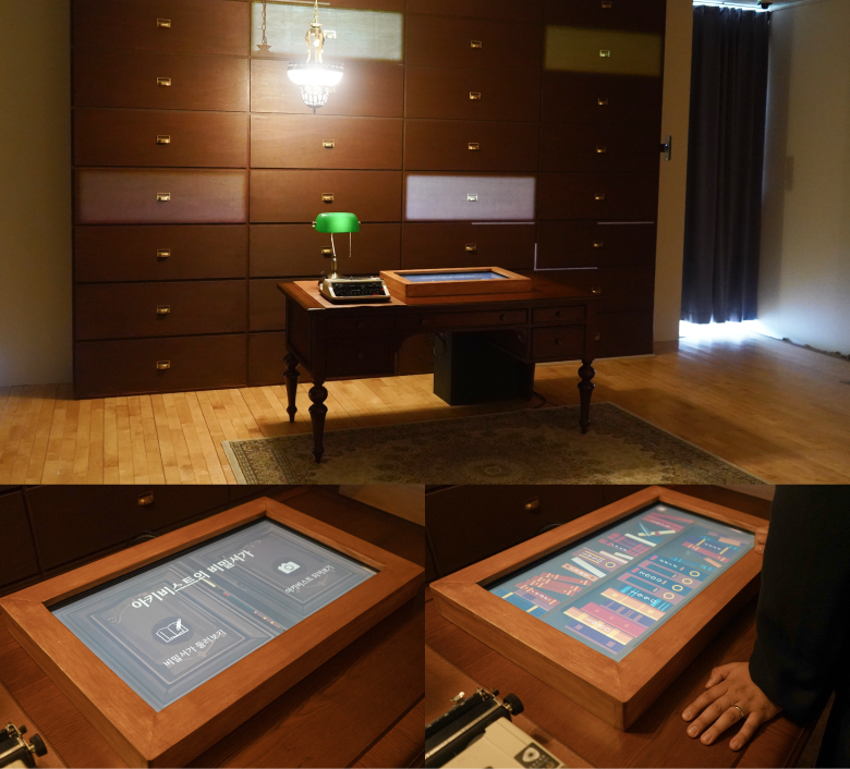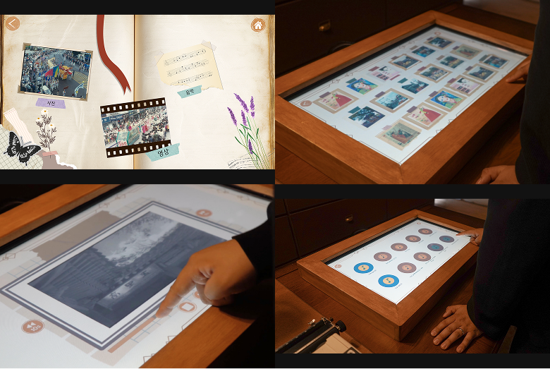 전시 공간에는 종이 넘기는 소리, 필기하는 소리, 타자 소리 등 아카이브 현장에서 들을 수 있는 소리들을 배경으로 사운드 디자인했습니다.이러한 소리들은 참여자가 마치 실제 아키비스트의 작업 공간에 있는 듯한 느낌을 주도록 연출했습니다.