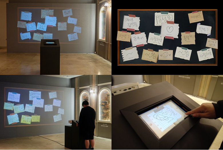 참여자가 직접 작성한 메시지가 선택한 메모지와 함께 실시간으로 나타나는 인터랙티브 드로잉 메시지 월을 연출 및 제작했습니다.