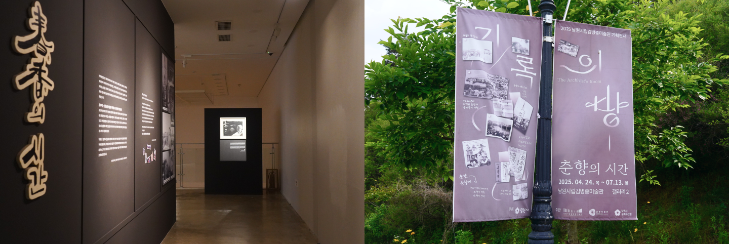 2025 남원시립김병종미술관 기획 전시 《 기록의방, 춘향의 시간 》 은 아키비스트의 시선에서 춘향제의 기록을 수집하고 복원하며, 춘향제의 기록이 단순한 자료의 집합이 아니라 공동체의 정체성을 구축하고 재구성하는 기억임을 보여주고자 하는 전시입니다.