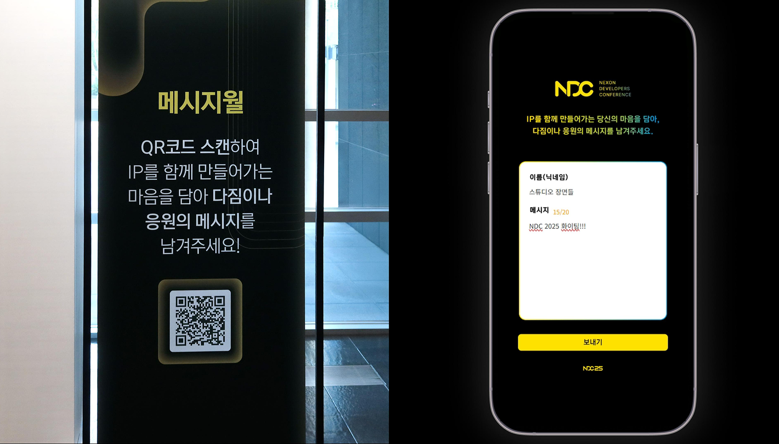 NDC 2025넥슨 개발자 콘퍼런스 인터랙티브 QR 메시지 월