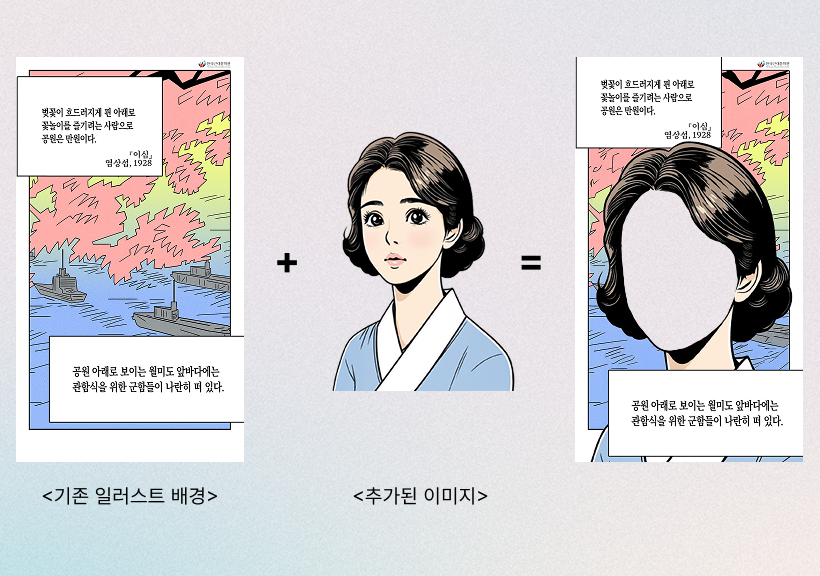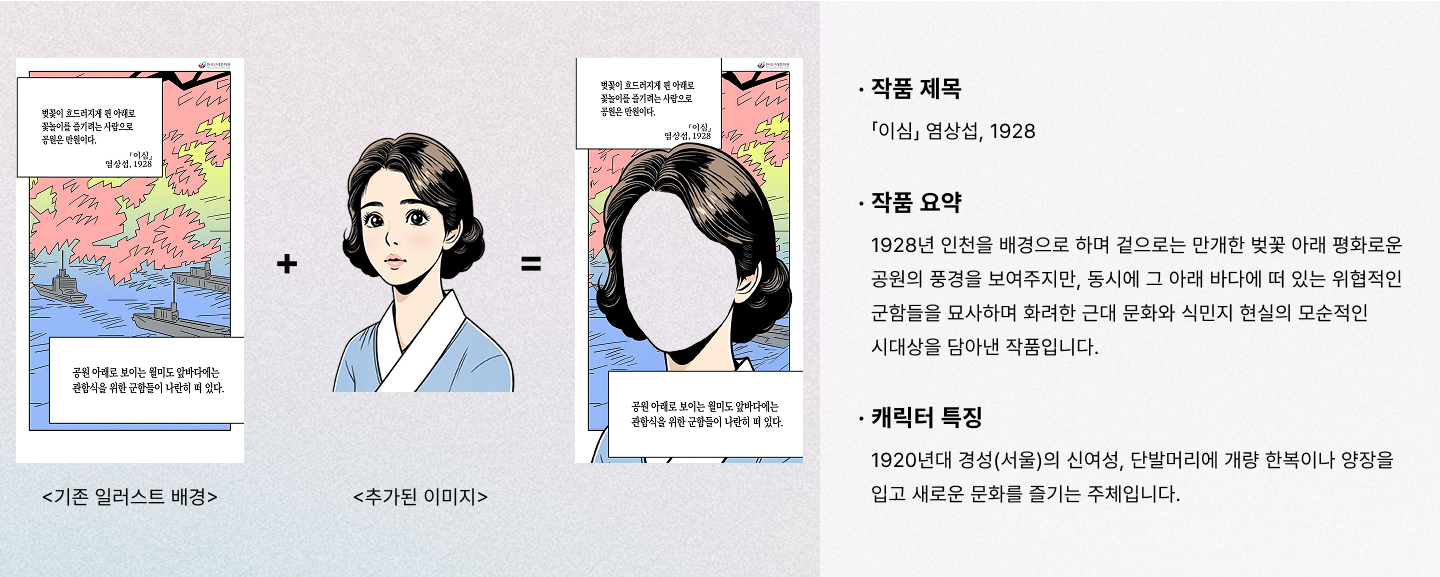각 문학 작품의 고유한 이야기를 담은 캐릭터를 제작했습니다. 이때 캐릭터 스타일은 기존 일러스트 배경과 자연스럽게 어우러지도록 하여, 사용자들이 콘텐츠를 더 재미있게 즐길 수 있도록 했습니다.
