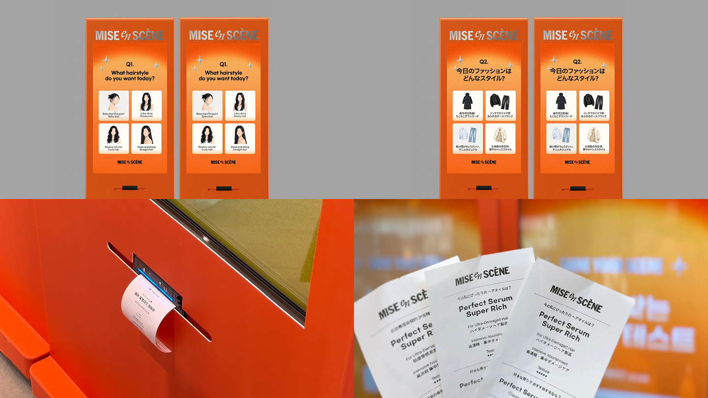 참여자가 각 질문의 선택지를 고르면,결과에 맞춰 세럼을 추천해 주는 제품 추천 영수증 키오스크를 개발했습니다.