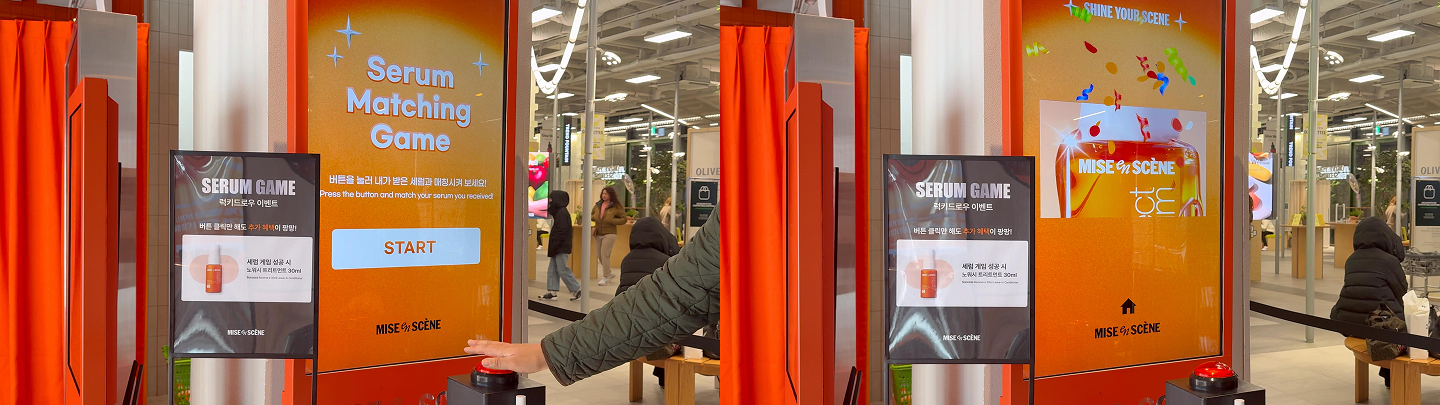 뷰티 브랜드 팝업스토어제품 추천 키오스크, 럭키드로우 게임